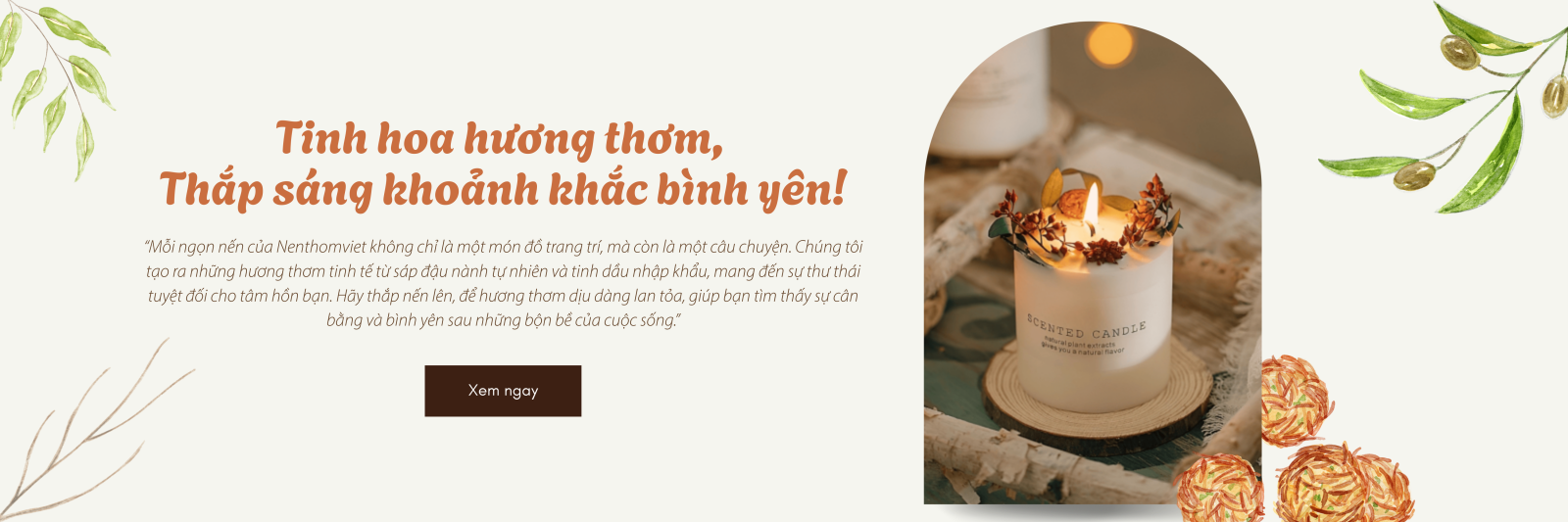 Tại Nenthomviet, chúng tôi không chỉ tạo ra nến thơm, mà còn kiến tạo nên những khoảnh khắc đáng nhớ. Mỗi ngọn nến là kết quả của sự đam mê và tâm huyết, với mong muốn mang đến một cuộc sống chậm rãi và trọn vẹn hơn. Hãy để Nến Thơm Việt trở thành người bạn đồng hành, giúp bạn tìm thấy sự bình yên và cân bằng trong cuộc sống.